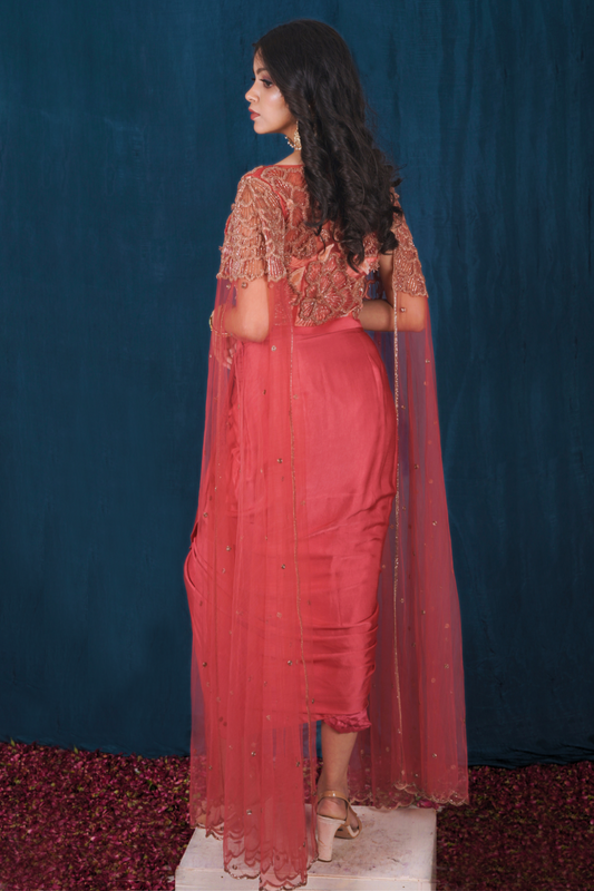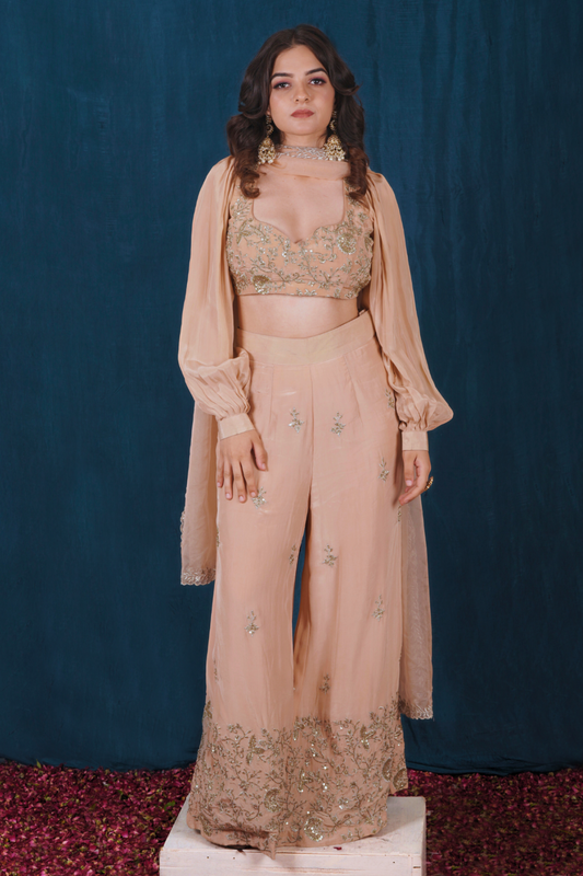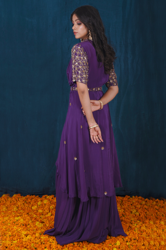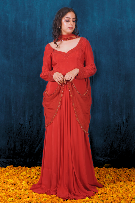Rust Orange Banarasi Georgette Peplum and Sharara Set