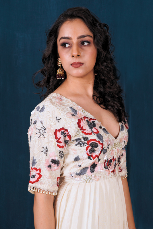 Off-White Multicolor Resham Work Indowestern Peplum Set