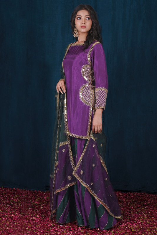 Rust Orange Banarasi Georgette Peplum and Sharara Set